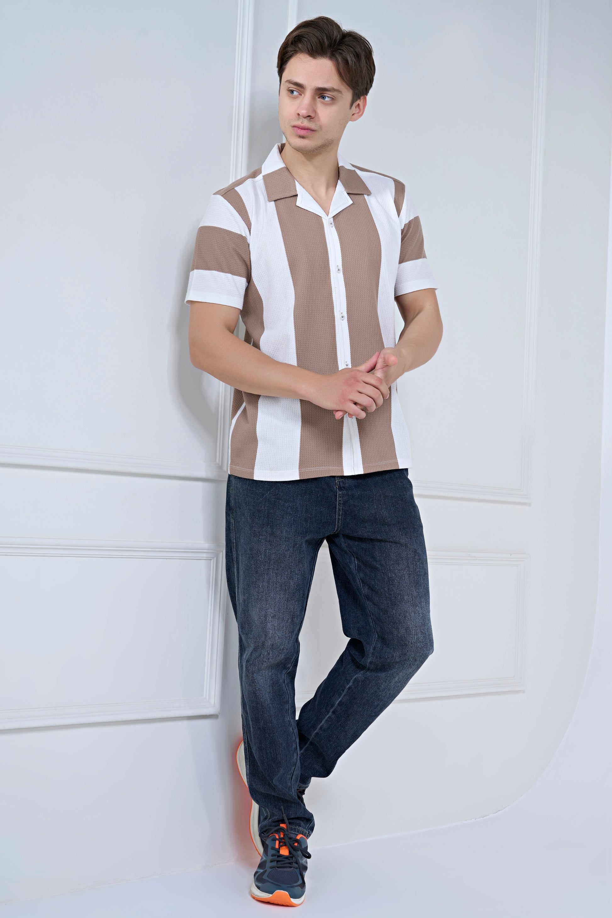 Introducing the effortlessly stylish Cuban Shirt in our signature striped pattern. Designed with a relaxed Cuban collar and a flattering vertical layout, it offers a silhouette that feels sharp yet laid-back. Crafted from breathable, lightweight fabric, it’s perfect for all-day comfort. The short sleeves and button-down design make it a versatile pick for everything.